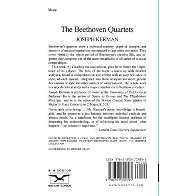 A wonderful tome about Beethoven and his amazing string quartets. It covers all 16 pieces and the Grosse Fugue, with in depth analyses and discussions about the history/style/musical structure of each quartet.My one comment would be;I have a masters degree in music, and as much as I love Kerman and his writings, he adores using big words and abstract musical terms when he doesn't have to., He pontificates and rambles occasionally, when he could state his case in much simpler terms most of the time. I would not recommend this book to someone who is just getting into Beethoven or isn't trained in music. If you have a degree in music or are just an aficionado, then you'll enjoy this book.
